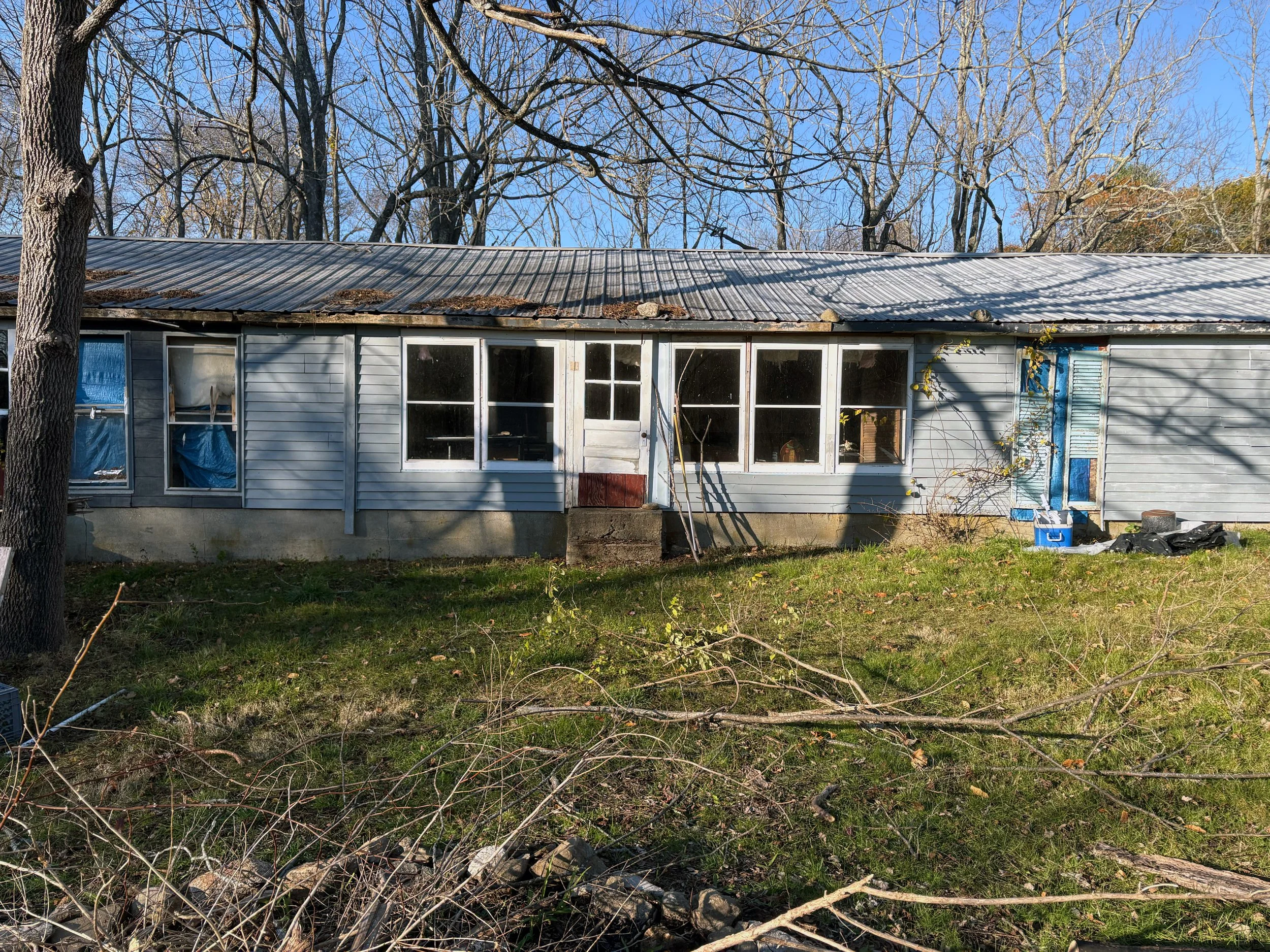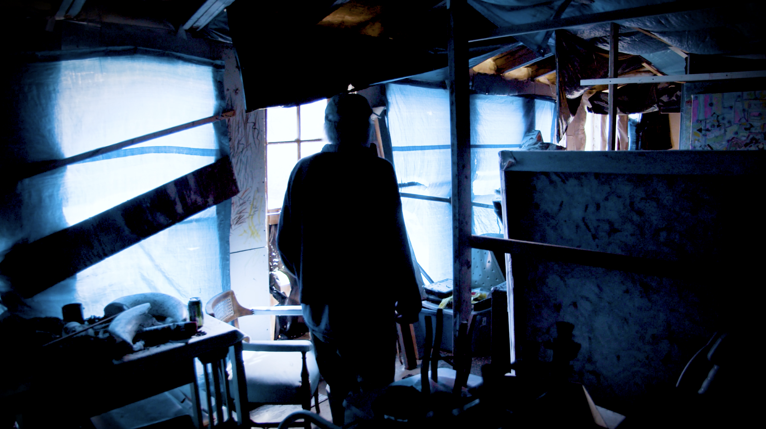 The blue tarps,